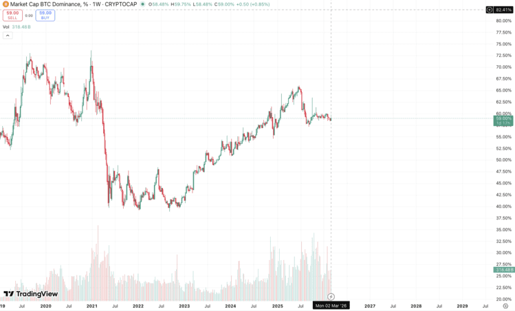 Domination du Bitcoin autour de 59 %. Source : TradingView.