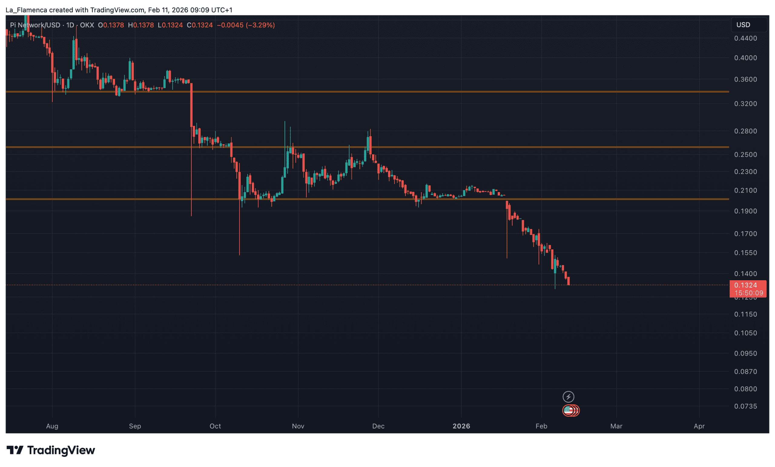 Pi a désormais largement cassé tous ses niveaux importants, notamment ceux de 0,20 et 0,25 dollar.