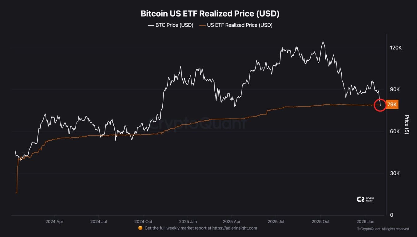 Le premier signal qui pourrait indiquer un rebond concerne le prix d’achat moyen de l’ensemble des ETF bitcoin américains.