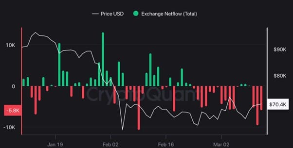 Lorsque les traders retirent leurs cryptos des plateformes d’échange, cela suggère une confiance dans le cours. En effet, cela montre qu’ils ne se préparent pas à vendre, puisque les ventes doivent généralement se faire via les exchanges.