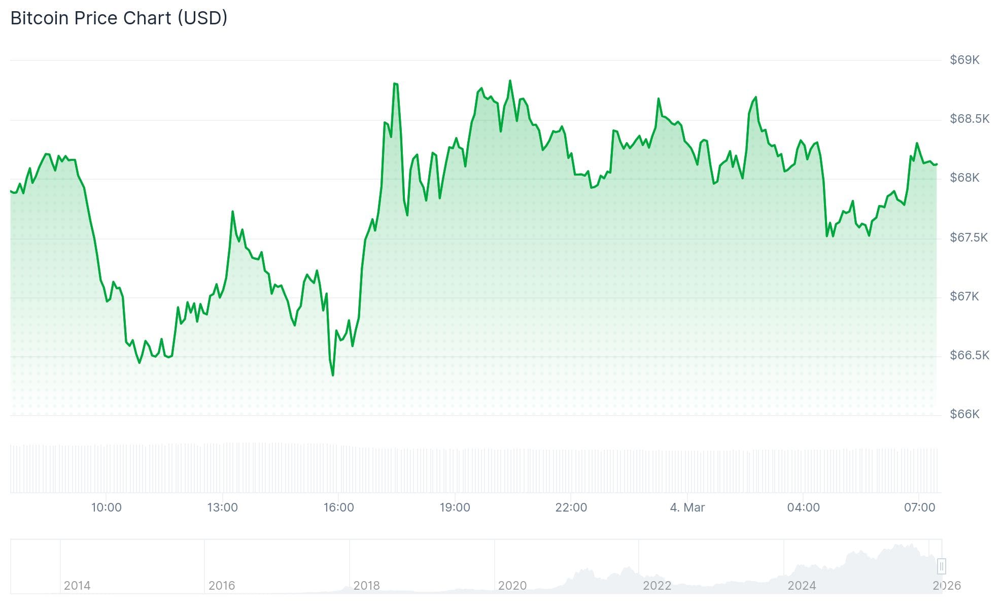 Au moment de la rédaction de ces lignes, le bitcoin s’échange à 68 128 dollars sur la plateforme OKX. Sur l’exchange Bitvavo, le BTC vaut environ 58 717 euros, soit une hausse de 0,29 % sur les dernières 24 heures.