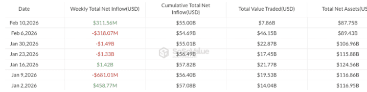 - Transactions hebdomadaires dans les ETF spot bitcoin américains en 2026. Source : SoSoValue