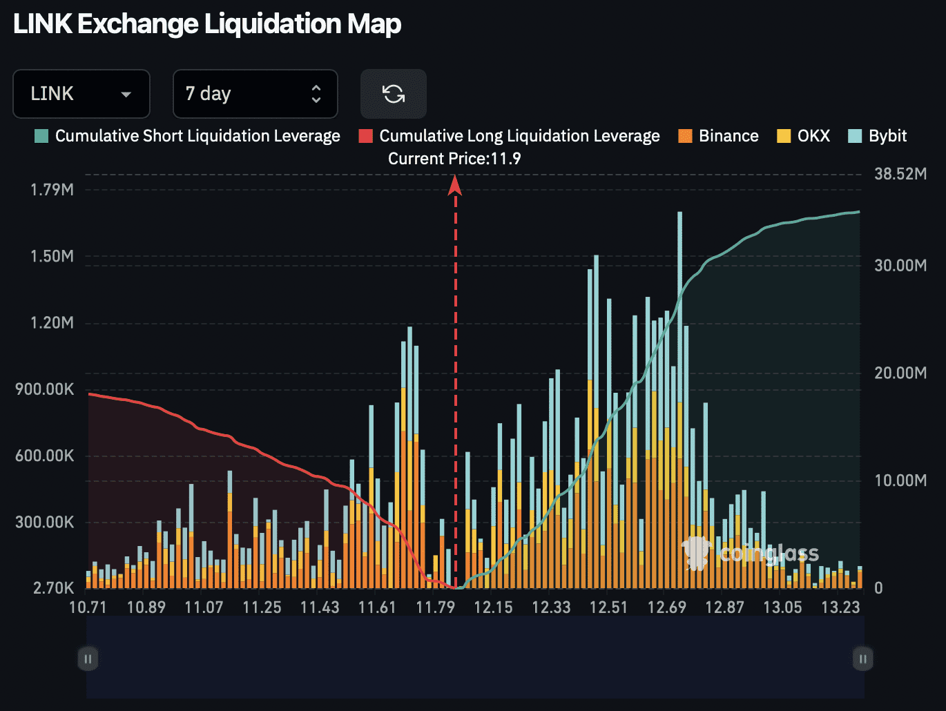 Si le cours de Chainlink parvient à dépasser les 13,20 dollars, environ 30 millions d’euros de positions short pourraient être liquidés.