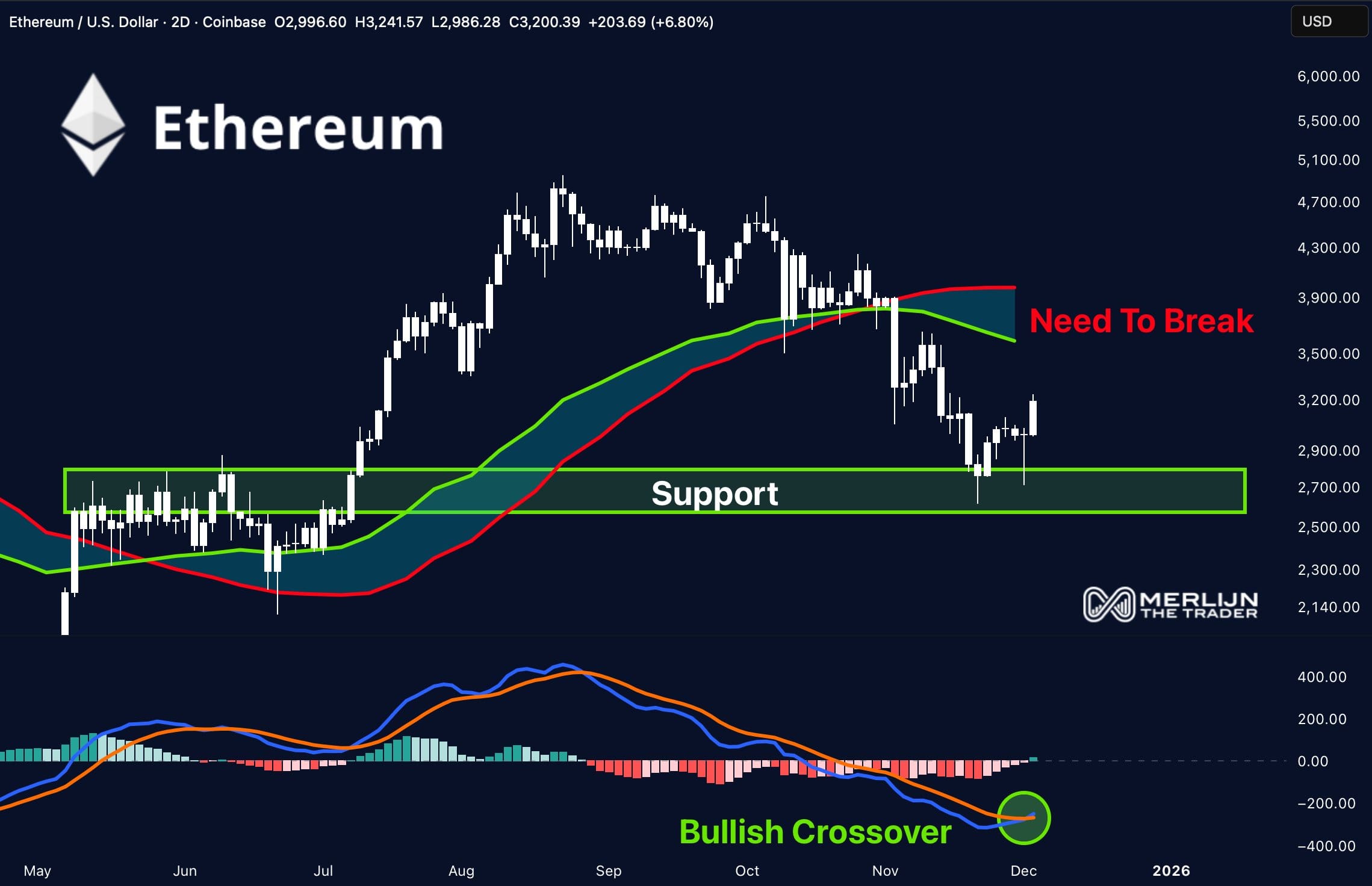 Mieux encore, la dernière fois que les barres du MACD sont devenues vertes, ethereum a bondi de plus de 100 % en l’espace de quelques mois.