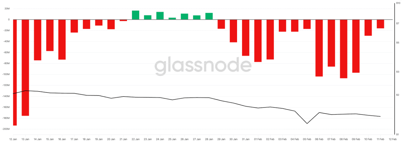 La demande pour le XRP a fortement diminué cette semaine. D’après les données de Glassnode, entre le 8 et le 11 février, le flux net sortant de tokens XRP a reculé de 85 %.