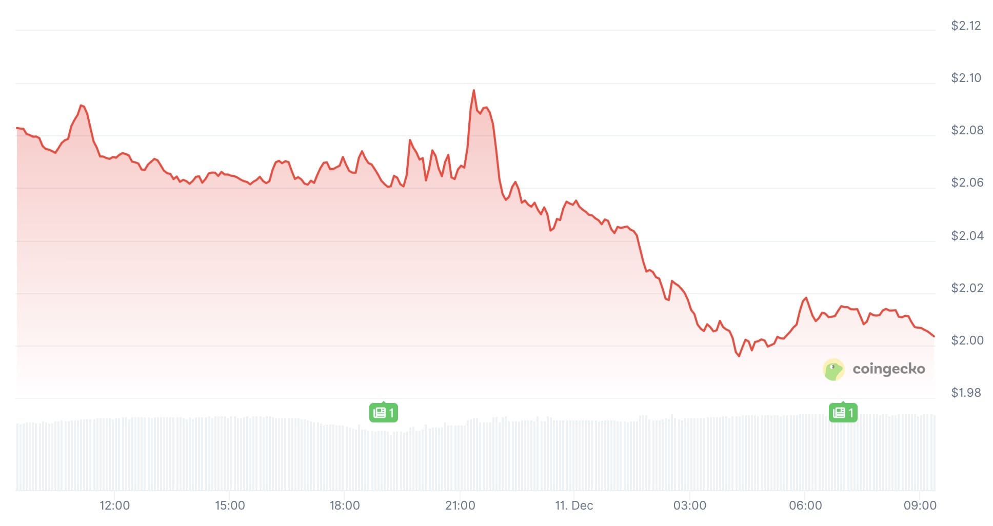 Actuellement, le XRP connaît une chute marquée. Rien que ces dernières 24 heures, son prix a reculé d’environ 4 %. Il semble toutefois trouver un support autour de 2 dollars, où il se stabilise au moment de l’écriture.