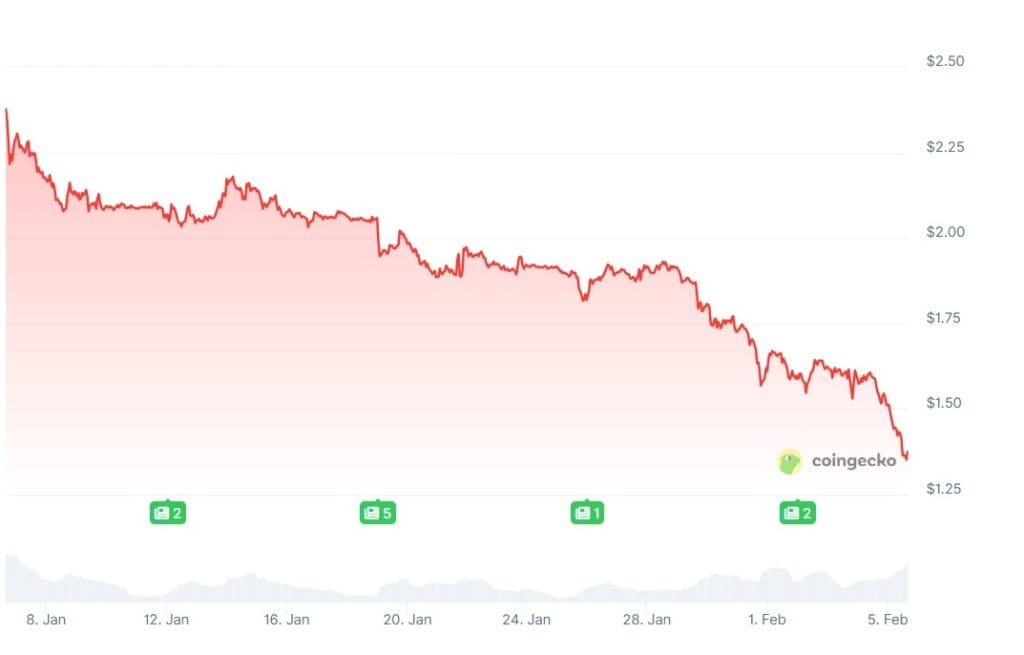 Début janvier, le XRP évoluait encore autour de 1,84 dollar. Par rapport au sommet de 3,65 dollars atteint en juillet 2025, la cryptomonnaie affiche désormais une baisse de plus de 60 %.