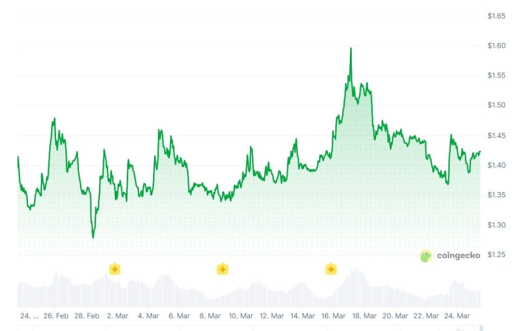 Récemment, une hausse a encore été freinée autour de la zone des 1,60 dollar. Cela correspond aux niveaux de résistance mentionnés. La possibilité pour le XRP d’entamer à nouveau un fort rebond dépend d’une percée convaincante et du maintien des zones de soutien importantes.