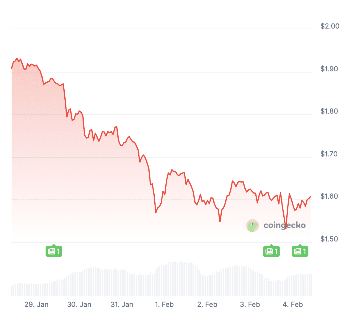 Au moment de la rédaction, le XRP s’échange autour de 1,60 dollar. Cela représente une baisse de 16 % sur une semaine et de 25 % sur un mois. Selon plusieurs analystes, le redressement s’annonce compliqué et le risque d’une nouvelle baisse reste bien présent.