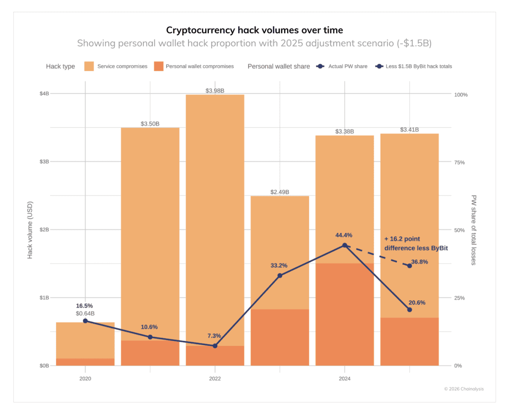 À eux seuls, trois piratages majeurs ont représenté 69 % de l’ensemble des fonds volés en crypto en 2025, selon Chainalysis dans son annonce préalable au Crypto Crime Report 2026.