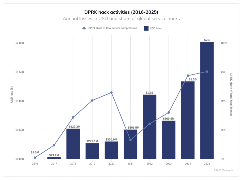 Ce fut une nouvelle année record pour les hackers crypto. En 2025, ils seraient parvenus à dérober pas moins de 2,9 milliards d’euros, selon un nouveau rapport de Chainalysis. L’essentiel de ces pertes provient de seulement trois attaques majeures. Et derrière une grande partie de ces opérations se cache… la Corée du Nord. Explications.