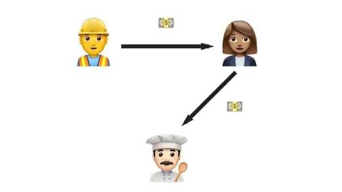 Stel je het volgende voor: Henk stuurt geld naar Anne, Anne koopt op haar beurt een brood bij bakker Jan en stuurt het geld naar Jan om hem te betalen.